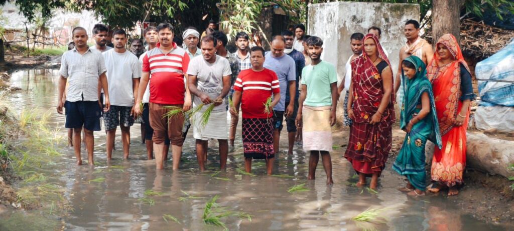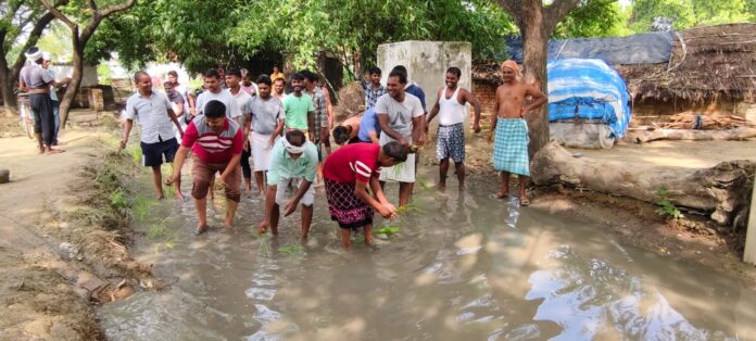 गाजीपुर । खानपुर थाना क्षेत्र के बभनौली कला गांव में ग्रामीणों ने सड़क पर धान रोपकर सरकार के खिलाफ अनूठा विरोध प्रदर्शन किया ग्रामीणों ने कहा की सड़क पूरी तरह जर्जर होकर गड्ढे में तब्दील हो चुकी है जिससे आए दिन घटना होती रहती है ग्रामीणों की समस्या सरकार और जनप्रतिनिधियों को दिखाई नहीं दे रही है जबकि इसी सड़क से सावन के महीने में कावरिए जल चढ़ाने और दर्शन के लिए जाएंगे ग्रामीणों ने कहा की सड़क पर पानी भरने की वजह से स्कूल जाने वाले छात्र छात्राओं के साथ साथ सड़क पर चलने वाले राहगीरों को काफी मुश्किलों का सामना करना पड़ रहा है सड़क पर धान रोपकर विरोध करने वालो में समाजसेवी भोला पांडे , सूरज,चंचल,रणधीर,आशीष ,बबलू ,अजय ,राहुल ,राजू, पर्वत ,अमरनाथ, शिव शंकर ,अजीत ,मनोज ,झप्पू, सुधीर ,महाराज सहित दर्जनों महिलाए मौजूद रही।