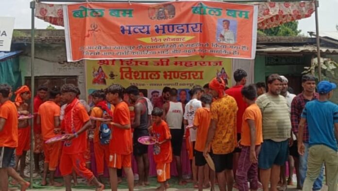 खानपुर: सावन माह के दूसरे सोमवार को भारी संख्या में कांवरियोंने शिवालयों में गंगाजल से जलाभिषेक किया इस अवसर परव्यापार मंडल खानपुर की तरफ से सोमवार को जौनपुर और आजमगढ़ की ओर जाने वाले कांवरियों के पैरों पर ठंडा पानी डालकर उन्हें आराम कराया गया। स्नान करने वालों के लिए भी व्यवस्था बनायी गई थी। इसके बाद सोमवार को सुबह पांच बजे से दोपहर दो बजे तक लगातार कांवरियों के बीच भोजन और जलपान का प्रबंध रखा गया था। जलपान के बाद कांवड़ दल ने जयकारे के साथ व्यापारियों का आभार जताया। खानपुर बाजार के व्यापारियों ने प्रति वर्ष की भांति इस साल भी भव्य भंडारा का आयोजन किया था। जिसमें आने जाने वाले सभी कावरिया भाई बहन सभी लोग प्रसाद ग्रहण किए। इस मौके पर संतोष गुप्ता समाजसेवी, शोमारू मोदनवाल, बिक्की मोदनवाल, अप्पू मोदनवाल (कुक), राजन मोदनवाल, गोल्डी मोदनवाल, चंदन मोदनवाल, बंटी सेठ, अखिलेश मोदनवाल, अमृतेश सिंह, शिवराज, सचिन, प्रभाकर आदि लोगो ने मुख्य रूप से सहयोग किया।