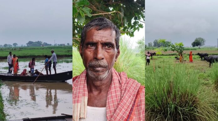 गाजीपुर। करंडा क्षेत्र में बाढ़ ने भयावह रूप ले लिया है। तुलसीपुर, शेरपुर, रफीपुर, महाबलपुर, सोकनी, कटरिया, करंडा, गोसन्देपुर और नौदर जैसे दर्जनों गांव पूरी तरह पानी में डूब चुके हैं। गंगा का पानी रिहायशी इलाकों में तेजी से घुस रहा है, जिससे हजारों लोग अपने घर छोड़कर पलायन करने को मजबूर हो गए हैं।महाबलपुर गांव में हालात सबसे अधिक भयावह हैं। यहां के लोग अपने मवेशियों और जरूरी सामानों के साथ सुरक्षित ठिकानों की तलाश में दर-दर भटक रहे हैं। गांवों में सड़कें डूब चुकी हैं और अब नाव ही एकमात्र सहारा बन गई हैं।ग्रामीण खेतों और नहर के किनारे तिरपाल की झोपड़ियों में जीने को मजबूर हैं। बच्चों, महिलाओं और बुजुर्गों की हालत बेहद चिंताजनक है। बाढ़ का पानी लगातार बढ़ रहा है और अब तक प्रशासन की ओर से कोई ठोस राहत या बचाव कार्य शुरू नहीं हुआ है। स्थानीय लोगों में रोष है। उनका कहना है कि हर साल बाढ़ आती है, लेकिन सरकार और प्रशासन सिर्फ आश्वासन देकर रह जाते हैं। इस बार हालात बेकाबू हैं और अगर समय रहते ठोस कदम नहीं उठाए गए, तो जान-माल का भारी नुकसान तय है।