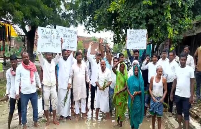 गाजीपुर में बरसात के मौसम में सड़कों पर बने गड्डों में भरे पानी में स्थानीय लोगों ने धान की रोपाई कर अधिकारियों को आईना दिखाया है। मनुवापुर चौकिया बाजार से हरिहरपुर, कनरी, औरंगाबाद चौकिया, खावपुर आदि गांवों को जोड़ने वाली सड़क की स्थिति बेहद खराब है। सड़क की गिट्टियां उखड़ गई हैं और बड़े-बड़े गड्ढे बन गए हैं। बारिश के कारण ये गड्ढे पानी से भर गए हैं। इससे आम लोगों को पानी से होकर गुजरना पड़ रहा है। इस समस्या के विरोध में क्षेत्रीय लोगों ने एकत्र होकर सड़क पर बने गड्डों में भरे पानी में धान रोपकर अपना विरोध जताया। प्रदर्शनकारियों का कहना है कि इस समस्या के समाधान के लिए जिले का कोई भी अधिकारी गंभीर नहीं है। समाजवादी पार्टी के नगर अध्यक्ष दिनेश सिंह यादव ने कहा कि इस सड़क पर पानी भरकर तालाब जैसा हो गया है। इस मार्ग पर दो स्कूल प्राथमिक और जूनियर भी हैं। विद्यार्थियों को आने-जाने में बहुत कठिनाइयों का सामना करना पड़ रहा है। राहगीरों को भी इस सड़क पर चलने में काफी परेशानियां हो रही हैं। उन्होंने आरोप लगाया कि अधिकारियों और सरकार में बैठे जनप्रतिनिधियों का इस ओर ध्यान नहीं जा रहा है। इसलिए लोगों ने धान रोपकर सरकारी अधिकारियों को आईना दिखाने का काम किया है। उन्होंने चेतावनी दी कि अगर समय रहते इस सड़क का निर्माण नहीं कराया गया तो वे अधिकारियों की शव यात्रा निकालकर फिर से प्रदर्शन करने के लिए बाध्य होंगे।