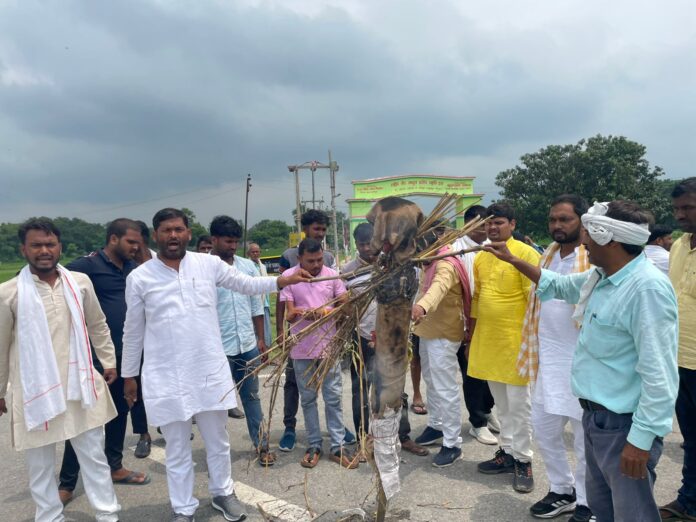 रसूलपुर बेलवा क्रॉसिंग पर तीसरे दिन पुतला दहन, कल शवयात्रा निकालने की चेतावनी