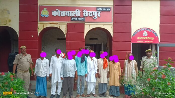 गाजीपुर। अपराधियों के खिलाफ चल रहे अभियान में सैदपुर कोतवाली पुलिस ने तगड़ी कार्रवाई करते हुए आठ वारण्टी को धर दबोचा। ये सभी आरोपी लंबे समय से पुलिस की पकड़ से बाहर चल रहे थे।गिरफ्तार वारण्टी लग्गन पुत्र शुकालु चौहान, परभु पुत्र बैजनात चौहान, रामधनी पुत्र शुकालु चौहान, राजेश पुत्र चन्द्रदेव यादव, तेजबहादुर सिंह पुत्र चन्द्रभुषण सिंह, सुबेदार पुत्र सुबराम, हसीन पुत्र मुर्तजा मियां और हमीद पुत्र मुर्तजा मियां है। पुलिस के मुताबिक, इन सभी पर अलग-अलग धाराओं में मुकदमे दर्ज हैं और इनकी तलाश कोर्ट के आदेश पर की जा रही थी। इस अभियान में उपनिरीक्षक रविन्द्र कुमार मय हमराह टीम ने जबरदस्त मेहनत कर सफलता हासिल की।