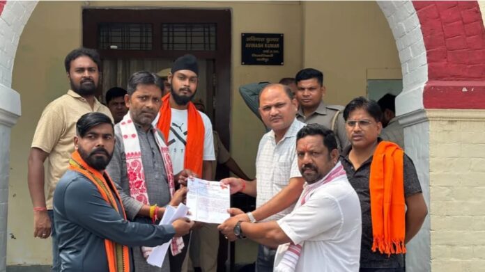 गाज़ीपुर। सोमवार को विश्व हिंदू परिषद, बजरंग दल गांधीपुरी के पदाधिकारी और कार्यकर्ता जिलाधिकारी गाजीपुर कार्यालय में नवरात्रि में डांडिया कार्यक्रम में अश्लील /फूहड़ गानों को आयोजकों के द्वारा प्रस्तुति से धार्मिक भावना आहत होने के संबंध में ज्ञापन सौपा। एडीएम दिनेश कुमार द्वारा ज्ञापन लिया गया। पदाधिकारियों ने कहा कि इस तरह के कार्यक्रमों को तत्काल रोक लगाया जाए और उचित कार्रवाई की जाए ।ज्ञापन देते समय विश्व हिंदू परिषद के जिला अध्यक्ष विपिन श्रीवास्तव,जिला मंत्री विनीत सिंह ,बजरंग दल संयोजक रविराज ,राजन , बृजेश , अजय चौरसिया आदि उपस्थित रहे