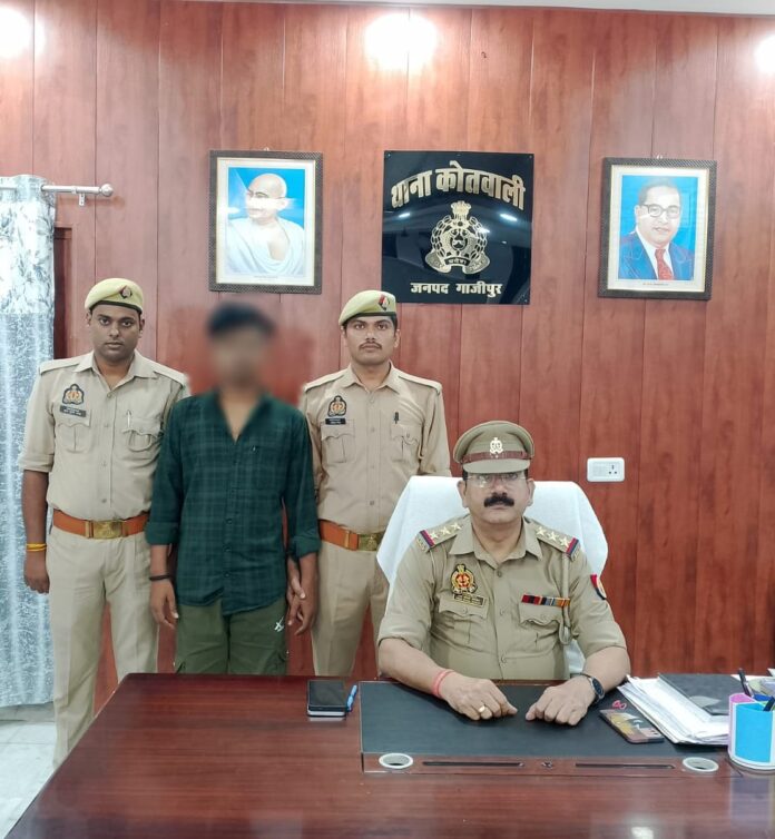 गाजीपुर। अपराध एवं अपराधियों के विरुद्ध चलाये जा रहे अभियान के क्रम में आज दिनांक 21.09.2025 को प्रभारी निरीक्षक दीन दयाल पाण्डेय, उ0नि0 शैलेश कुमार यादव मय हमराह द्वारा मुखबिर खास की सूचना पर थाना स्थानीय पर पंजीकृत मु0अ0सं0 691/2025 धारा 137(2), 64 बीएनएस व 5J(2)/5L/6 पाक्सो एक्ट से सम्बन्धित अभियुक्त शिवम चौरसिया उर्फ मोनू 21 वर्ष पुत्र कमलेश चौरसिया उर्फ लखेदू निवासी औरंगाबाद थाना कोतवाली जनपद गाजीपुर को सैनिक चौराहा के पास से गिरफ्तार किया गया। गिरफ्तारशुदा अभियुक्त के विरुद्ध अग्रिम विधिक कार्यवाही की जा रही है।