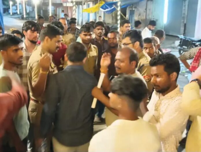 गाजीपुर। शहर कोतवाली थाना क्षेत्र के महाराजगंज बाजार में बुधवार देर शाम दुर्गा प्रतिमा विसर्जन जुलूस के दौरान अचानक बवाल हो गया। आरोप है कि मस्जिद के सामने से जुलूस गुजरते समय कुछ स्थानीय युवकों ने तलवार, लाठी-डंडे और ईंट-पत्थर से हमला कर दिया। इस हमले में एक श्रद्धालु के हाथ पर तलवार से चोट लग गई।प्रत्यक्षदर्शियों के अनुसार, जुलूस में शामिल श्रद्धालुओं ने जैसे-तैसे भागकर अपनी जान बचाई। बीच-बचाव में शिवमूर्ति जायसवाल, प्रेम जायसवाल, पप्पू मधेसिया और मदन बिन्द सुरक्षित बचे।नवयुवक दुर्गा पूजा समिति, महाराजगंज के अध्यक्ष अच्छे लाल गुप्ता ने इस संबंध में कोतवाली थाने में प्रार्थना पत्र दिया है। शिकायत में किताबुद्दीन उर्फ सोल्जर, जामीर और आमिर पुत्र मुख्तार अहमद समेत कुछ महिलाओं पर भी ईंट-पत्थर फेंकने का आरोप लगाया गया है। समिति ने यह भी कहा कि इससे पहले भी धार्मिक आयोजनों में झंडा उखाड़ने जैसी घटनाएं हो चुकी हैं।सूचना मिलते ही सीओ सिटी और सदर कोतवाल दीनदयाल पांडेय भारी पुलिस बल के साथ मौके पर पहुंचे और स्थिति को नियंत्रित किया।एसपी सिटी ज्ञानेंद्रनाथ प्रसाद ने बताया कि, घटना की जानकारी मिली है मामला दर्ज कर लिया गया है। जांच की जा रही है और जो भी दोषी पाया जाएगा उसके खिलाफ सख्त कार्रवाई होगी।
