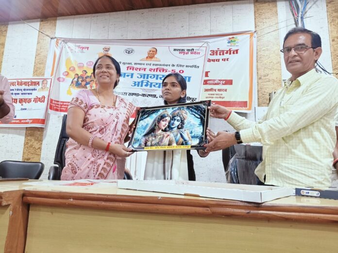 गाजीपुर। करंडा विकास खंड में शुक्रवार को मिशन शक्ति-05 के तहत खंड विकास अधिकारी सुवेदिता सिंह के नेतृत्व में महिलाओं के सम्मान और सशक्तिकरण को समर्पित एक भव्य गोष्ठी का आयोजन किया गया। कार्यक्रम में विकास खंड क्षेत्र की महिला सफाई कर्मचारी एवं पंचायत सहायकों ने बढ़-चढ़कर हिस्सा लिया।
