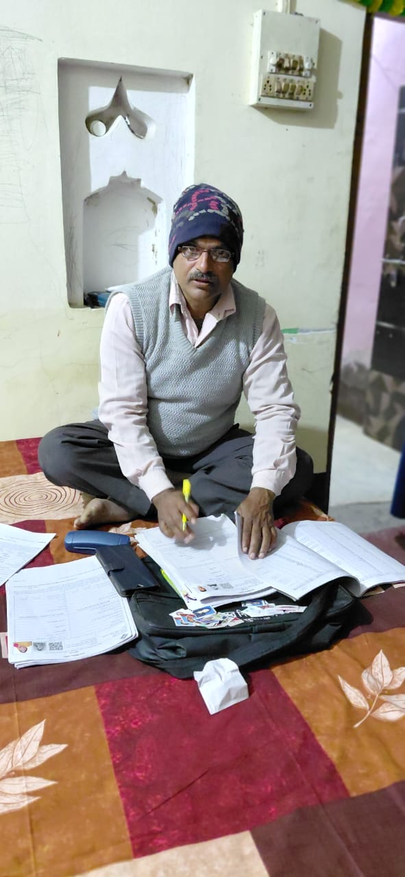 रात में एसआईआर के कार्य को पूरा करते बीएलओ जुगनू यादव