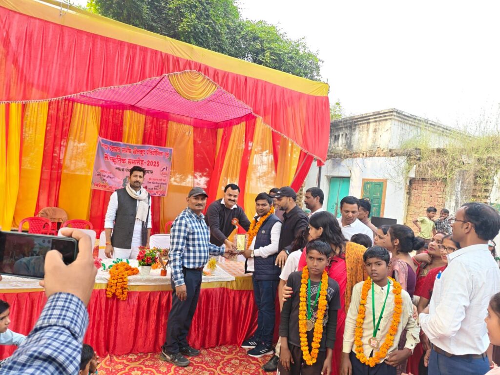 सैदपुर।।न्याय पंचायत स्तरीय खेलकूद एवं सांस्कृतिक प्रतियोगिता का आयोजन एनपीआरसी मुड़ियार में हुआ ।कार्यक्रम की शुरुआत प्राथमिक विद्यालय मुड़ियार के प्रधानाध्यापक जितेंद्र सिंह और प्राथमिक विद्यालय नरायणपुर ककरही के प्रधानाध्यापक छविनाथ यादव ने मां सरस्वती की प्रतिमा पर दीप प्रज्वलित कर किया । इसके बाद प्राथमिक विद्यालय लच्छीपुर की छात्राओं ने सरस्वती वंदना के साथ कार्यक्रम की शुरुआत की। प्राथमिक विद्यालय बड़िहारी की छात्राओं ने स्वागत गीत पर नृत्य प्रस्तुत कर सभी को मंत्रमुग्ध कर दिया । देशभक्ति गीत पर रामपुर ककरही की छात्राओं ने बेहतरीन नृत्य प्रस्तुत कर अपनी प्रतिभा का प्रदर्शन किया । प्राथमिक स्तर के बालक वर्ग में 50 मीटर की दौड़ में सराय कासिम के आश्विन यादव प्रथम, बड़िहारी के आर्यन द्वितीय व रामपुर ककरही के शिवम तीसरे स्थान पर रहे।वही 100 मीटर बालक वर्ग में पहाड़पुर हलधर के प्रिंस प्रथम स्थान,बड़िहारी के अमन यादव द्वितीय व रामपुर ककरही के दल विंद ने तृतीय स्थान प्राप्त किया। बालिका वर्ग में 50 मीटर की दौड़ में लच्छीपुर की आशिया प्रथम,जीयनचक की अमृता द्वितीय व बड़िहारी की कृष्णा ने तृतीय स्थान प्राप्त किया।सौ मीटर की प्राथमिक स्तर के बालिका वर्ग में लच्छीपुर की आशिया प्रथम,बड़िहारी की अंजनी द्वितीय और तीसरे स्थान संयुक्त रूप से दौलतपुर की शीतल और मुड़ियार की अंकिता रही। वही दो सौ मीटर की बालिका वर्ग में बड़िहारी की अनन्या प्रथम मुड़ियार की सपना द्वितीय और लच्छीपुर की परी तीसरे स्थान पर रही प्राथमिक स्तर के बालक वर्ग की कबड्डी में प्राथमिक विद्यालय बड़िहारी प्रथम व सरायकासीम दूसरे स्थान प्राप्त किया। प्राथमिक स्तर के बालक वर्ग की लम्बी कूद पहाड़पुर के अभय व बालिका वर्ग में दौलतपुर की शीतल विजय प्राप्त की।बालक वर्ग के जूनियर स्तर की लम्बी कूद में सराय कासिम प्रथम व मुड़ियार दूसरा स्थान प्राप्त किया। विजेताओं को खंड शिक्षा अधिकारी उदयचंद राय व विवेक कुमार सिंह ने पुरस्कृत किया।मुड़ियार के प्रधानाध्यापक जितेन्द्र सिंह ने खंड शिक्षा अधिकारी को अंगवस्त्र भेंट किया वहीं शंकुल शिक्षक पीयुष श्रीवास्तव ने स्मृति चिन्ह भेंट किया। कार्यक्रम को सुचारू रूप से सम्पन्न कराने के लिए मुकेश यादव व श्रवण सिंह को खंड शिक्षा अधिकारी ने सम्मानित किया। कार्यक्रम का संचालन विमल कुमार सिंह ने किया।इस अवसर पर अनुराधा सिंह, अन्नपूर्णा, रेनू यादव, प्रतिमा सिंह, वर्षा दुबे राजकुमार, राजेश सिंह, रामाश्रय, संतोष यादव आदि उपस्थित रहे।