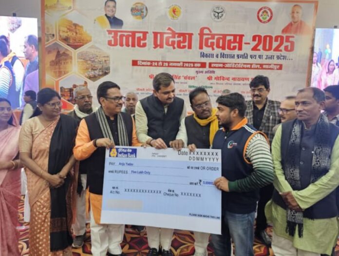 गाजीपुर। 24 से 26 जनवरी, तक तीन दिवसीय आयोजित प्रदर्शनी उ0प्र0 प्रदेश दिवस का शुभारम्भ मुख्य अतिथि सदस्य विधान परिषद/प्रदेश महामंत्री गोविन्द नारायण शुक्ल एवं सदस्य विधान परिषद विशाल सिंह ‘चंचल‘ तथा विशिष्ट अतिथियों एंव जिलाधिकारी एवं मुख्य विकास अधिकारी ने संयुक्त रूप से ऑडिटोरियम परिसर में फीता काटकर, एवं दीप प्रज्ज्वलित कर किया। यह प्रदर्शनी जनपद में 24-26 जनवरी आयोजित रहेगी। उत्तर प्रदेश दिवस के अवसर पर परिसर में विभिन्न विभागो द्वारा प्रदर्शनी लगायी गयी थी। प्रदर्शनी का अवलोकन करने के पश्चात मा0 मुख्य अतिथि मंचाशीन होने के उपरान्त कार्यक्रम में मुख्य अतिथि का स्वागत स्कूली बच्चियो द्वारा स्वागतगीत, सरस्वती वन्दना गाकर किया गया। समारोह में विभिन्न स्कूल के छात्र-छात्राओ द्वारा सांस्कृतिक कार्यक्रम, बालिका आत्म रक्षा, कलाकारो द्वारा टी बी रोग के बचाव हेतु लघु नाटक की प्रस्तुति दी गयी जो सराहनीय रहा। इस अवसर पर ऑडिटोरियम सभागार में लखनऊ से मुख्यमंत्री योगी आदित्य नाथ, उपराष्ट्रप्रति जगदीप धनखड़ द्वारा उत्तर प्रदेश दिवस के अवसर पर किये गये सम्बोधन का लाइव प्रसारण भी दिखाया एवं सुना गया। मुख्य अतिथि गोविंद नारायण शुक्ल ने अपना संबोधन व्यक्त करते हुए उत्तर प्रदेश दिवस के अवसर पर सभी को शुभकामना एवं अभिनंदन व्यक्त करते हुए कहा कि यह भारत का हृदय प्रदेश है। देश की 1.40 करोड़ आबादी का 1/5 हिस्सा उत्तर प्रदेश में निवासित है। उन्होने कहा कि यह जो उत्तर प्रदेश की धरा है वह काशी विश्वनाथ, लोकपालक श्रीकृष्ण एवं मर्यादा पुरुषोत्तम श्री राम की धरा है। यहां से भगवान बुद्ध का संदेश लोकमंगल के लिए प्रसारित हुआ था । यह वही धरा है जहां से भारत में स्वतंत्रता संग्राम का प्रथम जय घोष हुआ था। यह वही भूमि है जहां लोकतांत्रिक मूल्यों के संरक्षण और संबंधन से जनसंघ का गठन हुआ। यह प्रदेश दैविध्यपूर्ण प्रदेश है। उन्होने कहा कि हम उस प्रदेश के वासी हैं जहां संास्कृतिक, भौगोलिक, सामाजिक, आर्थिक, विविधता की प्रचुरता है। हम उस प्रदेश के वासी हैं जहां गंगा, यमुना और सरयू नदियों से घिरा हुआ जीवन राज्य ,समृद्ध, ऐतिहासिक, सांस्कृतिक और आधुनिकता से संपन्न है। उन्होने बताया कि 1950 से पूर्व या राज्य संयुक्त प्रांत के रूप में जाना जाता था। 24 जनवरी 1950 को उत्तर प्रदेश राज्य के स्वरूप में आया। उन्होने बताया कि 24 जनवरी 2018 को माननीय योगी जी के प्रथम कार्यकाल के दौरान तत्कालीन राज्यपाल महोदय ने उत्तर प्रदेश स्थापना दिवस मनाने का निर्णय लिया गया और आज वह इसी क्रम में लगातार 24 से 26 जनवरी तक मनाया जा रहा है। आज इस अवसर पर हम लोग उत्तर प्रदेश को विकसित उत्तर प्रदेश बनाने का संकल्प लेंगे। आज हम संकल्प इस बात कर लेंग